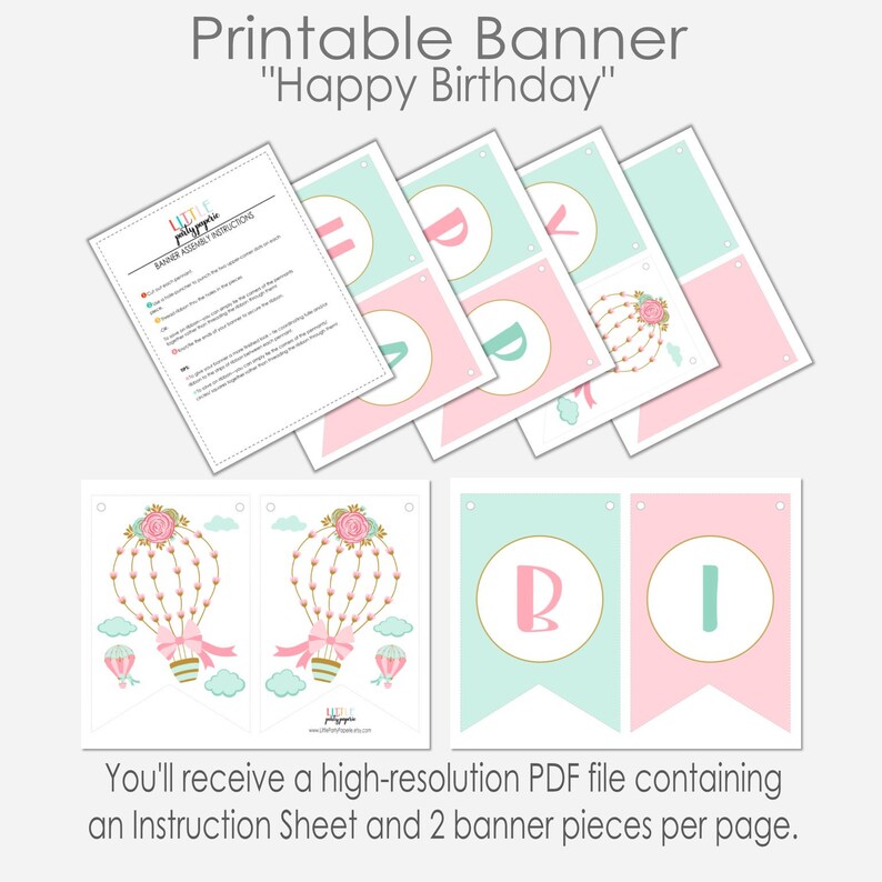 Hot Air Balloon PRINTABLE BIRTHDAY BANNER Instant Download Etsy