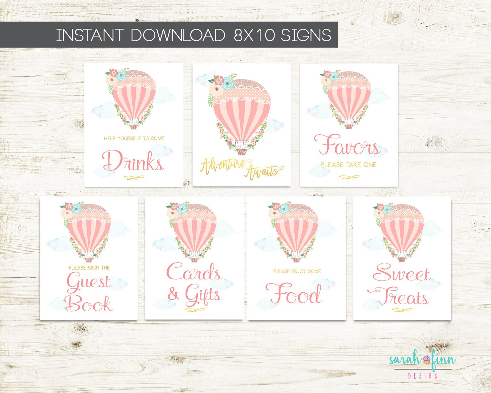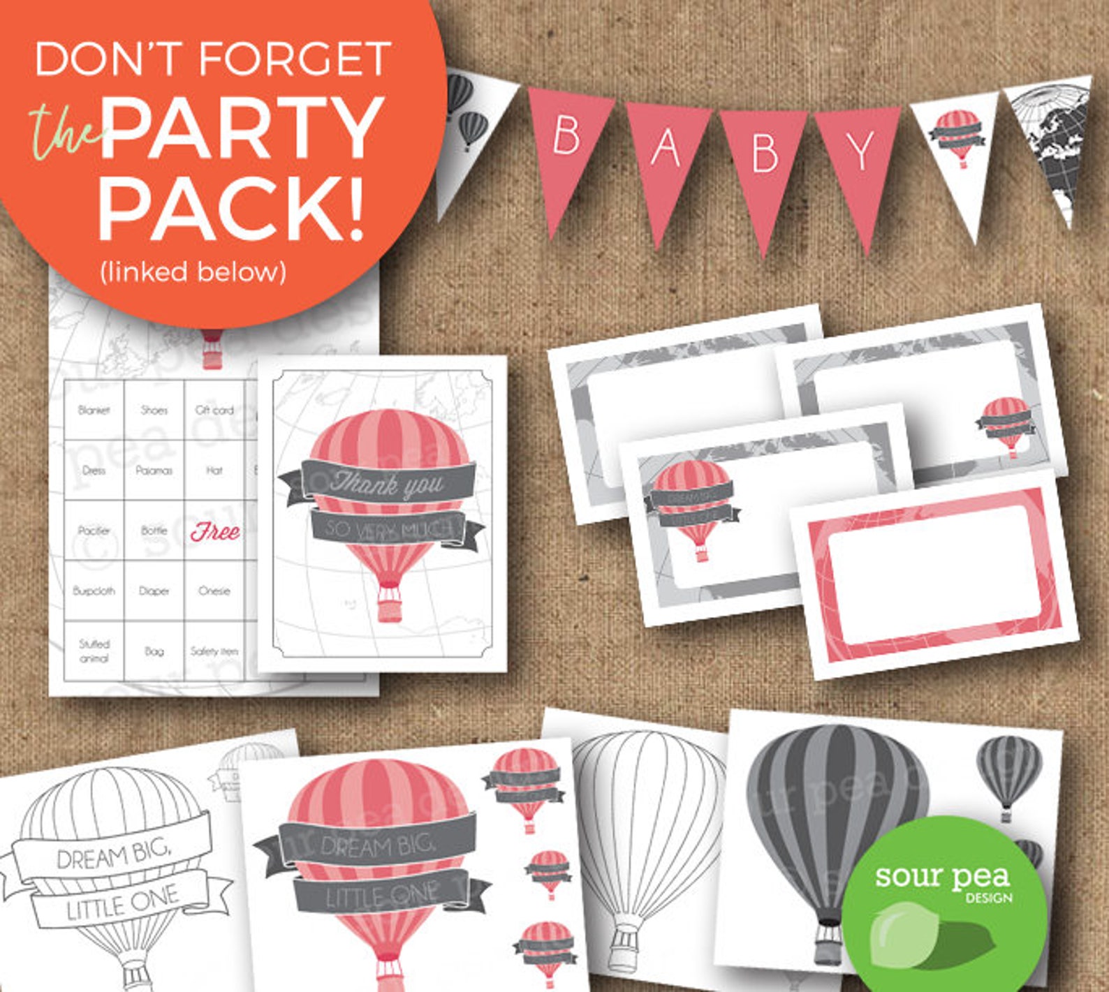 HOT AIR BALLOON Baby Shower Printable Package in Coral Instant
