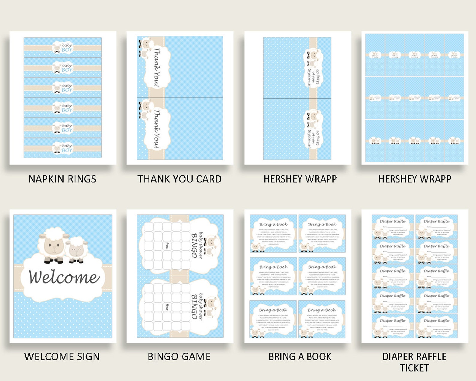 Blue White Baby Shower Decorations Boy Kit Little Lamb Baby Etsy