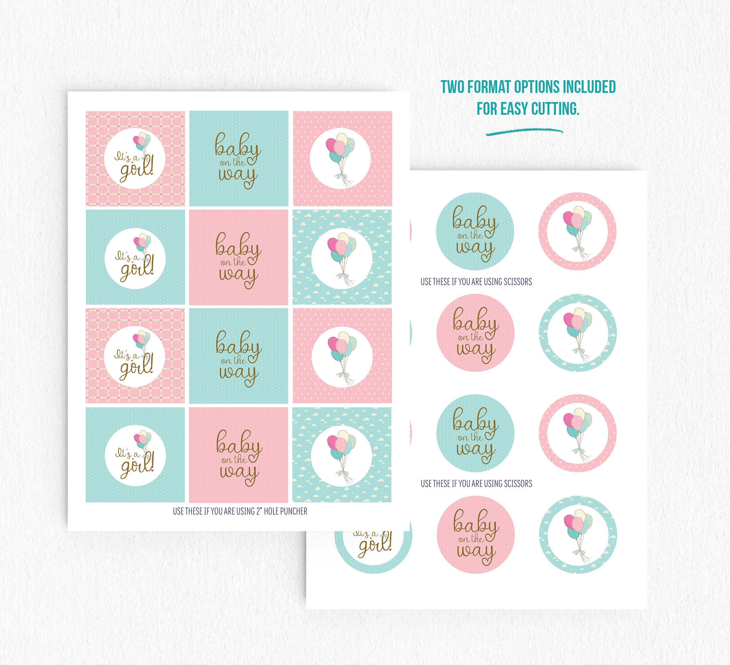 Baby Shower Girl Printable Cupcake Toppers Labels Pink Balloons Etsy