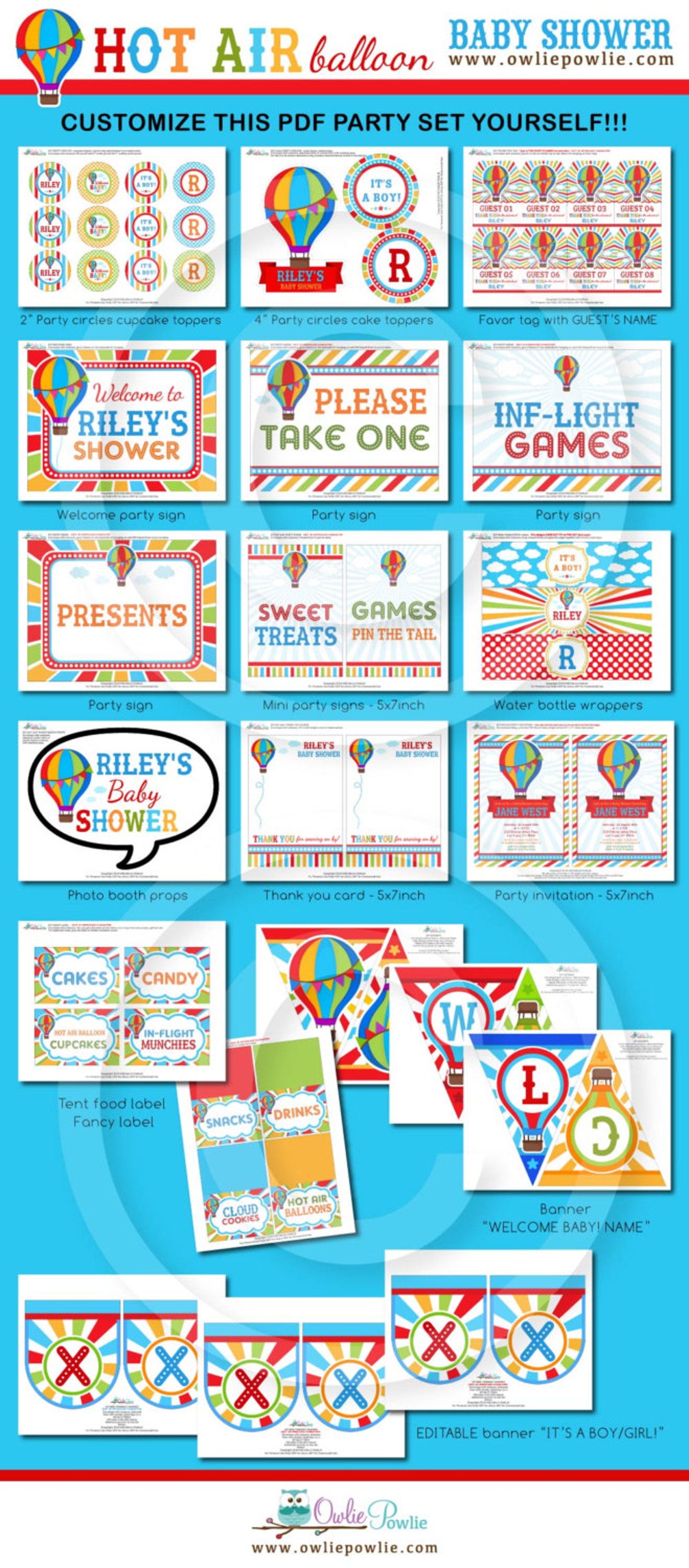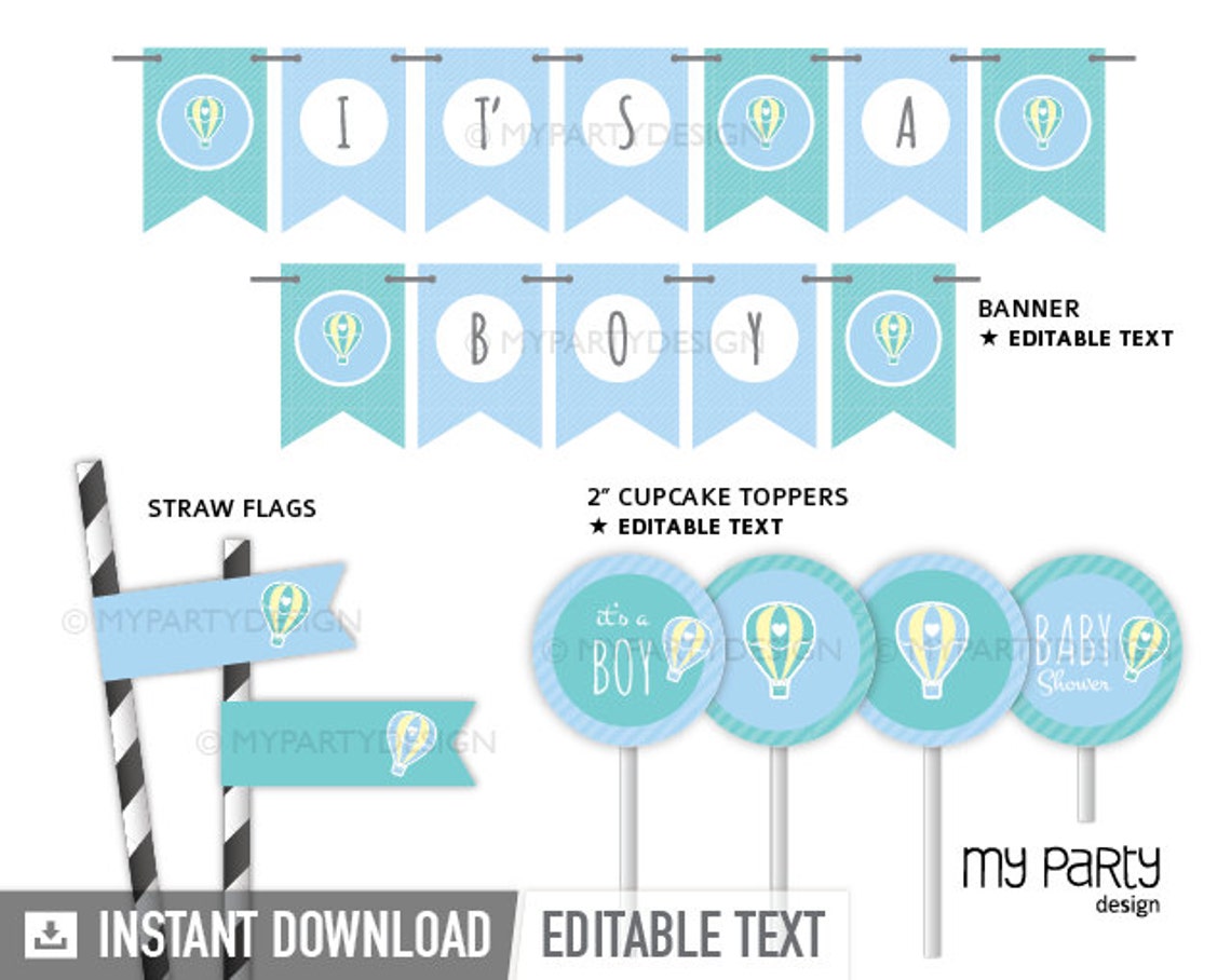 Hot Air Balloon BABY Shower Party Printable Package Etsy