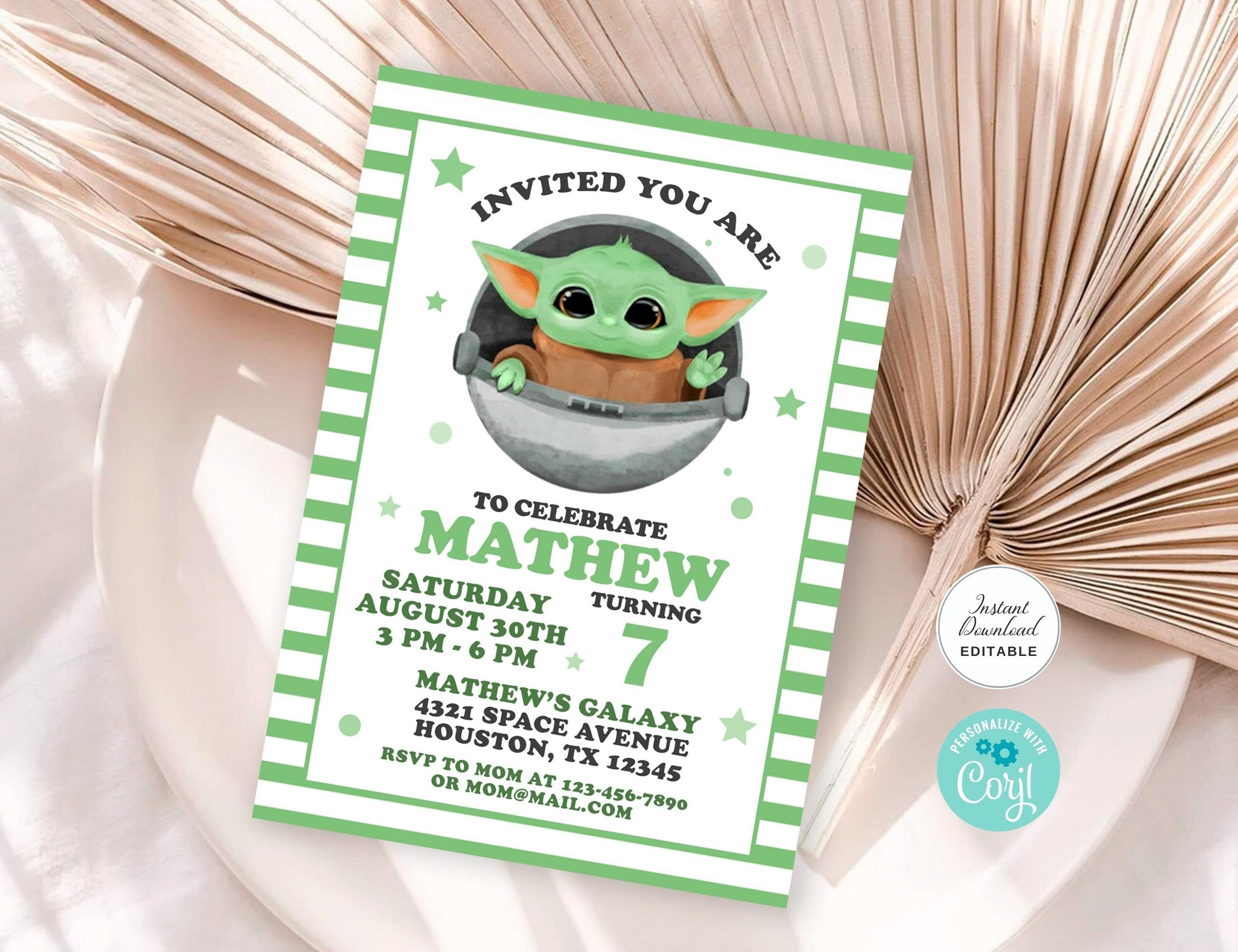 Editable Baby Yoda Birthday Invitation ANY AGE Baby Yoda Invitation