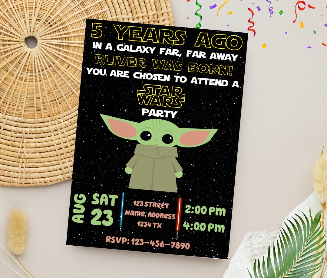 Invitación baby yoda Yoda party Star wars themed birthday party