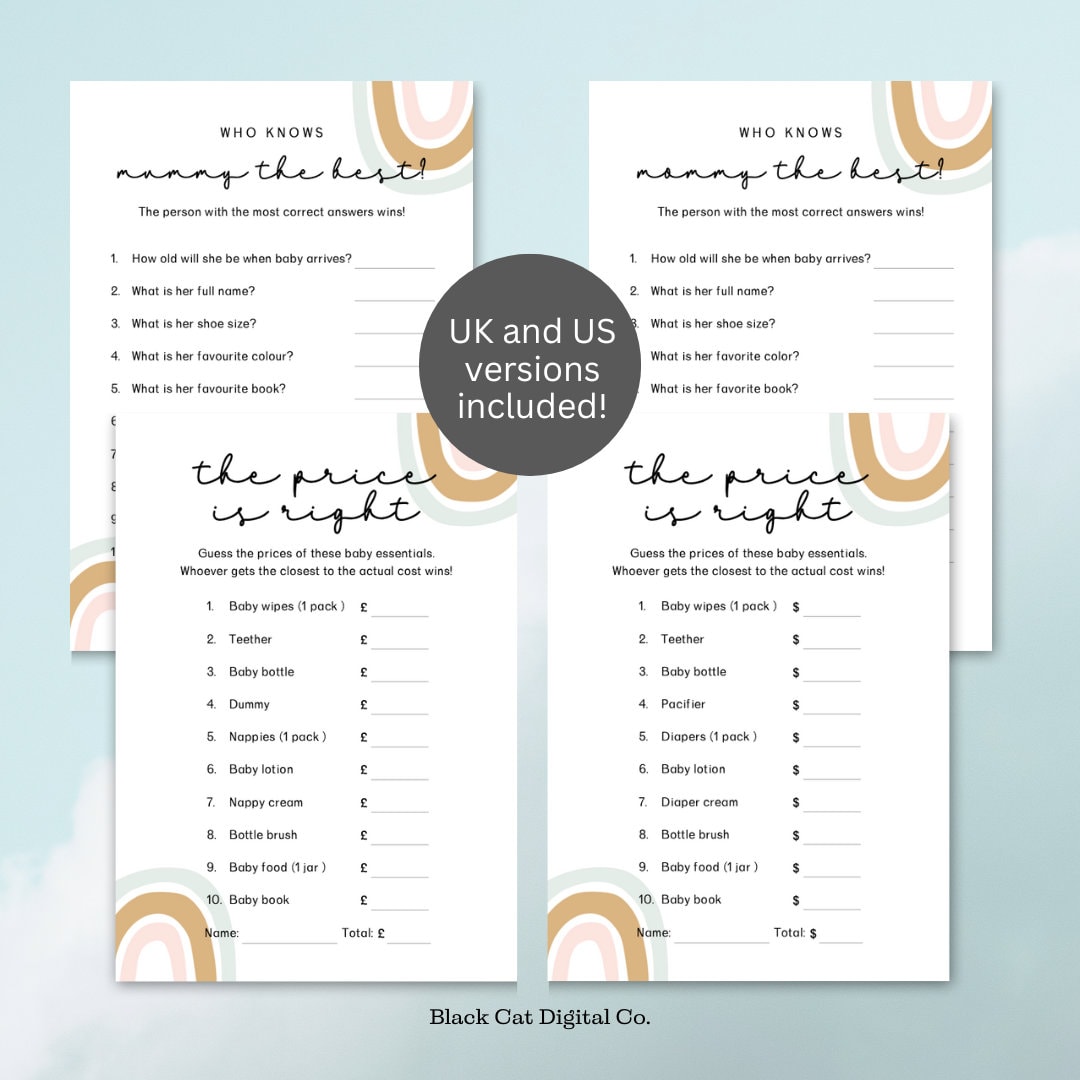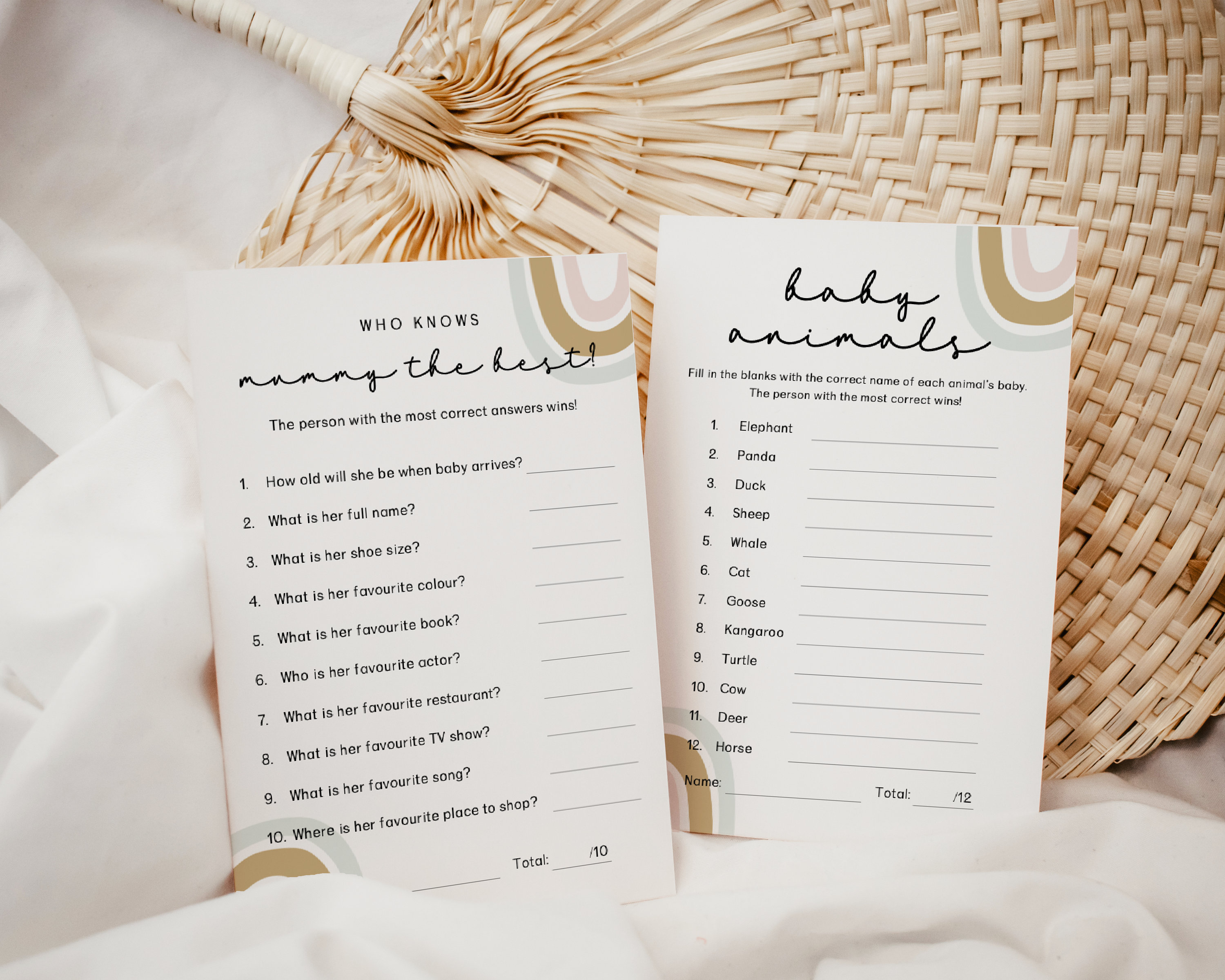 12 Printable Baby Shower Games Instant Digital Download Rainbow Design