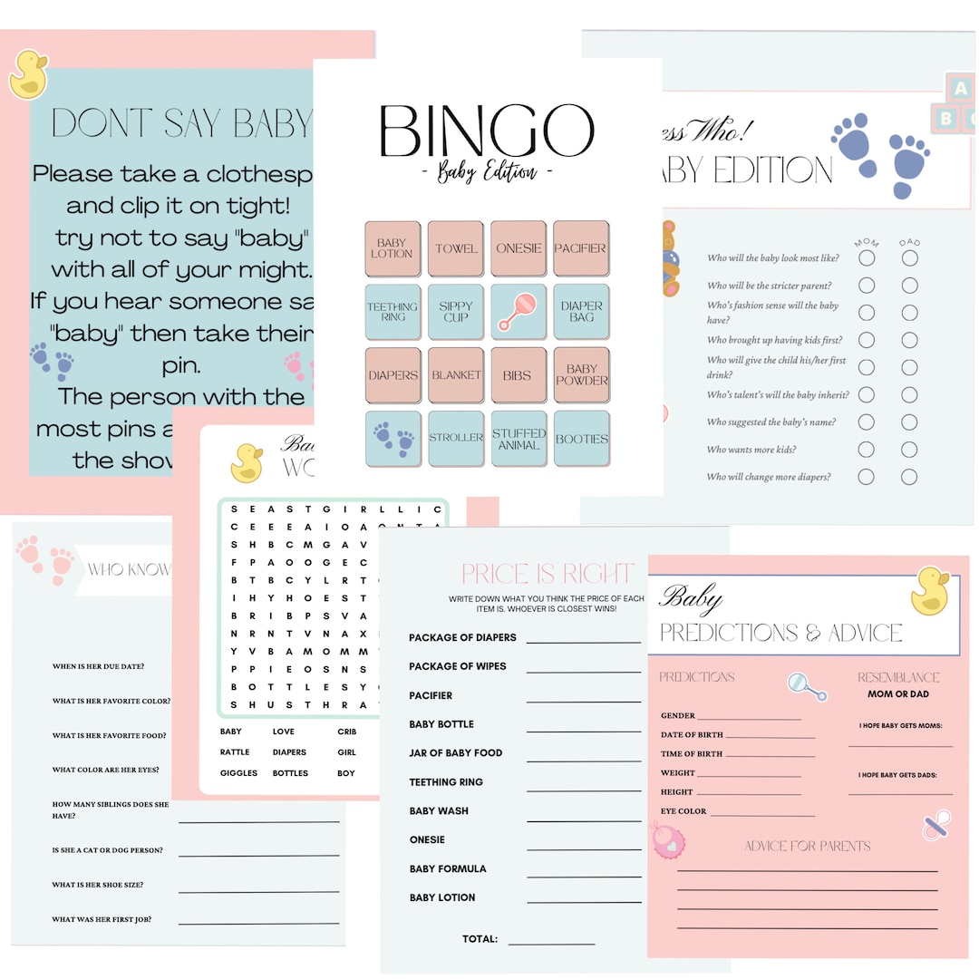 Printable Baby Shower Games Bundle Graphic by kkdigitalprints