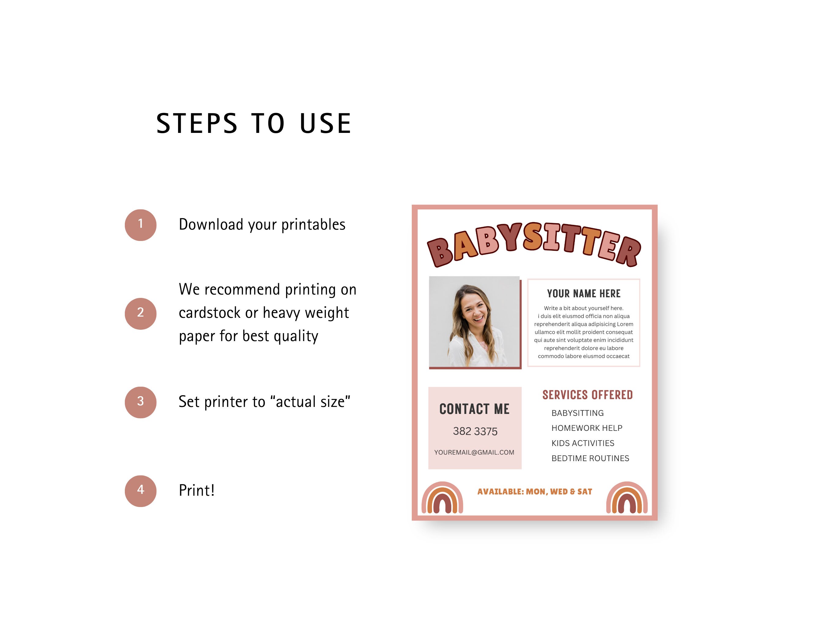 Babysitting Flyer Template Poster for Babysitter INSTANT DOWNLOAD