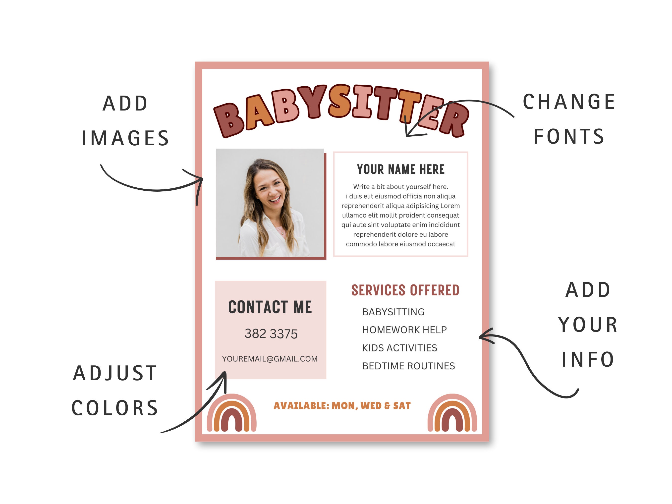 Editable Babysitter Flyer Babysitter Printable Babysitter Flyer