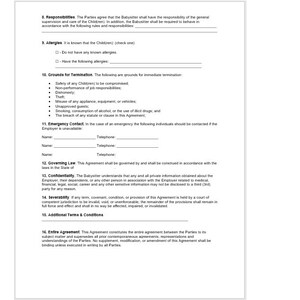 Babysitting Agreement Form template Pdf Download and Edit Etsy