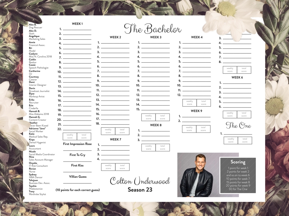 Matt James #39 #39 Bachelor #39 Bracket for Season 25: Printable