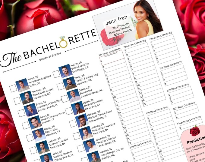 Bachelorette Bracket 2024: Printable for Jenn Tran #39 s Season Life Style
