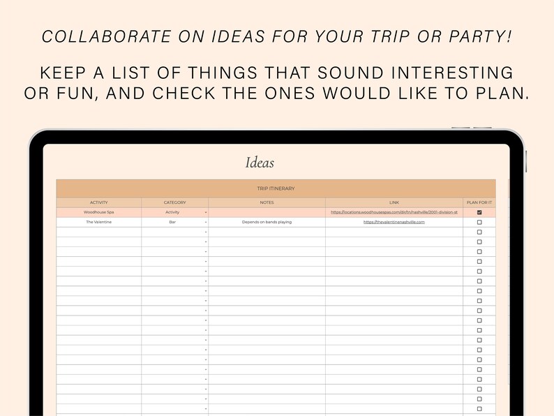 Bachelorette Party Planning Spreadsheet Bachelorette Trip Planner