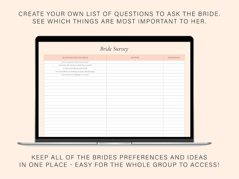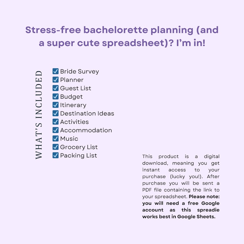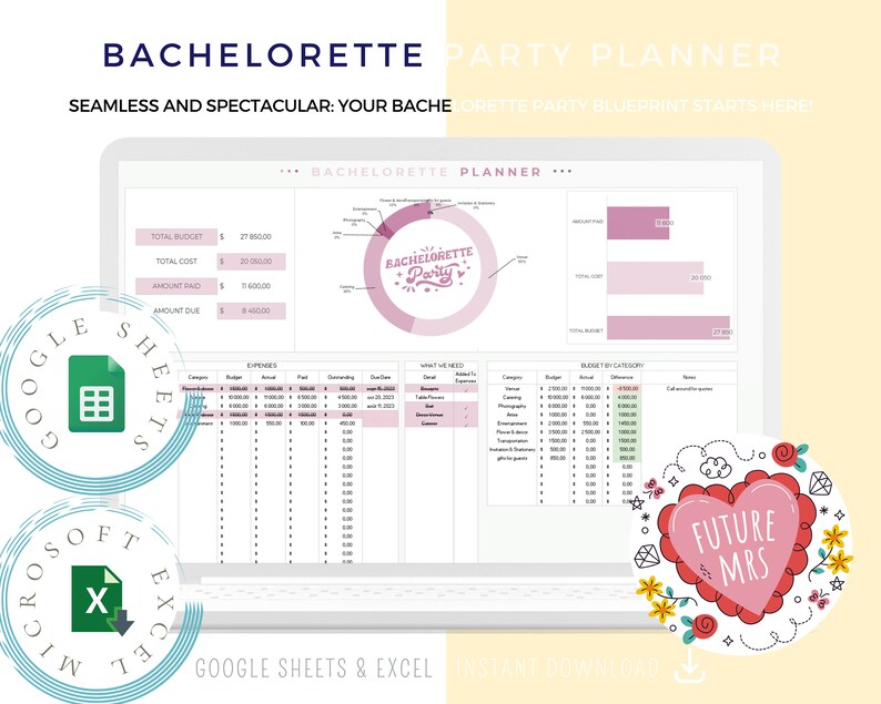 Bachelorette Planning Spreadsheet Template Digital Download for Google