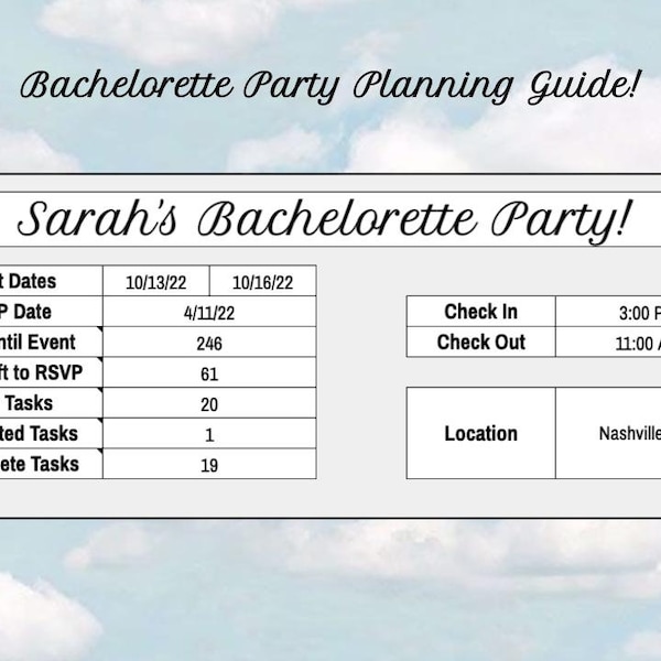 Bachelorette Party Planning for Google Sheets Bachelorette Planning