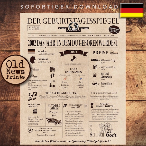 2002 PRINTABLE Vintage Newspaper Year You Were Born Birthday Bundle