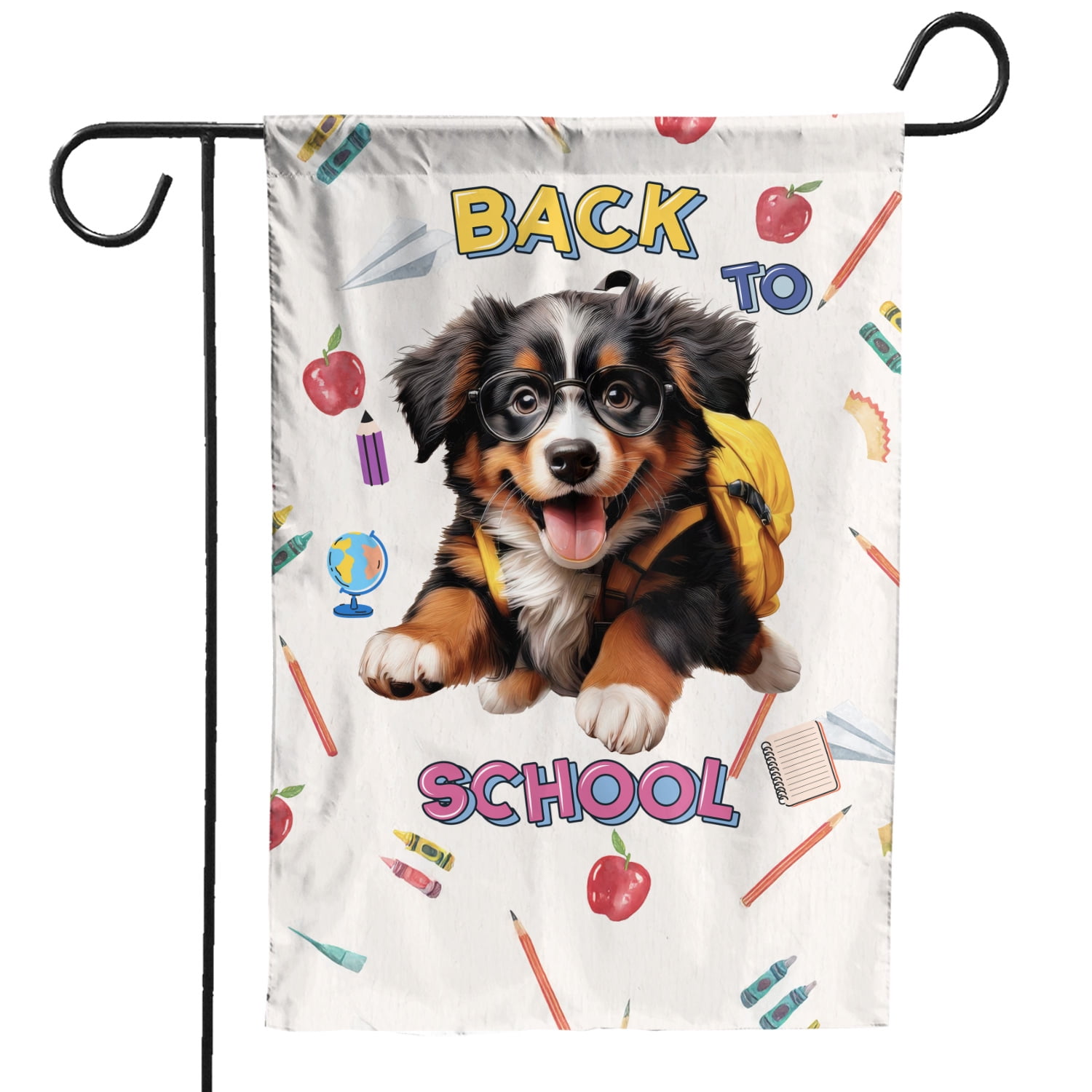 Back to School Cute Bernese Mountain Dog Garden Flag 12x18in Double
