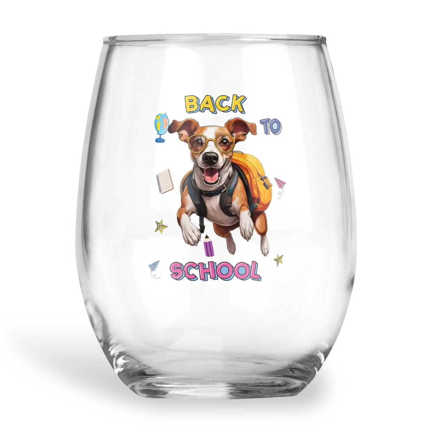 Back to School Cute Whippet 15oz Stemless Wine Glass Mug Dog Lover Wine