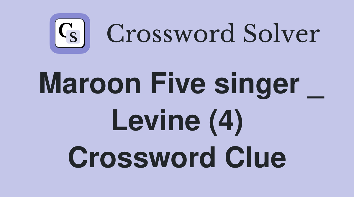 Maroon Five singer Levine (4) Crossword Clue Answers Crossword Solver