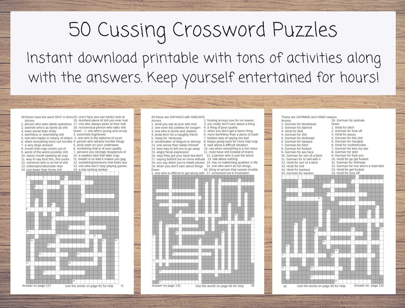 Printable Cussing Crossword Swearword Search and Slang Sudoku With