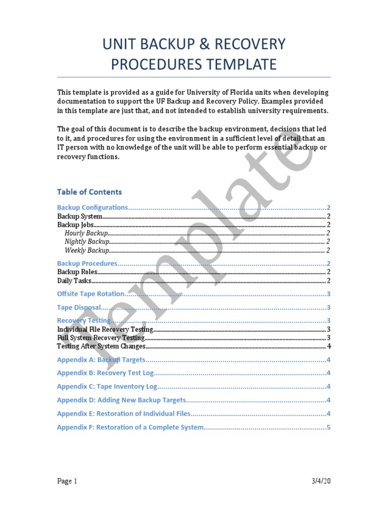 Unit Backup Procedures Template PDF
