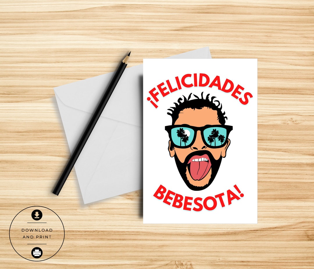 Bad Bunny Birthday Card Bad Bunny Card in Spanish Felicidades Bebesota