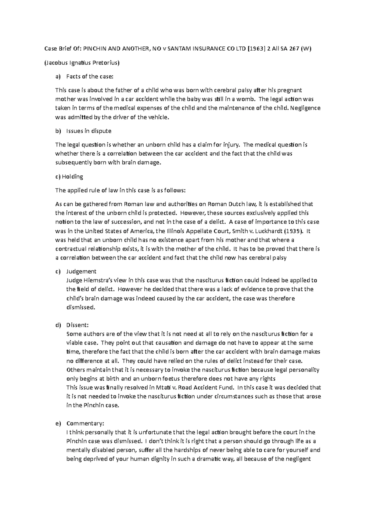 Pinchin V Santam Insurance CO LTD CASE SUMMARY CONCLUSION OVERTURNED