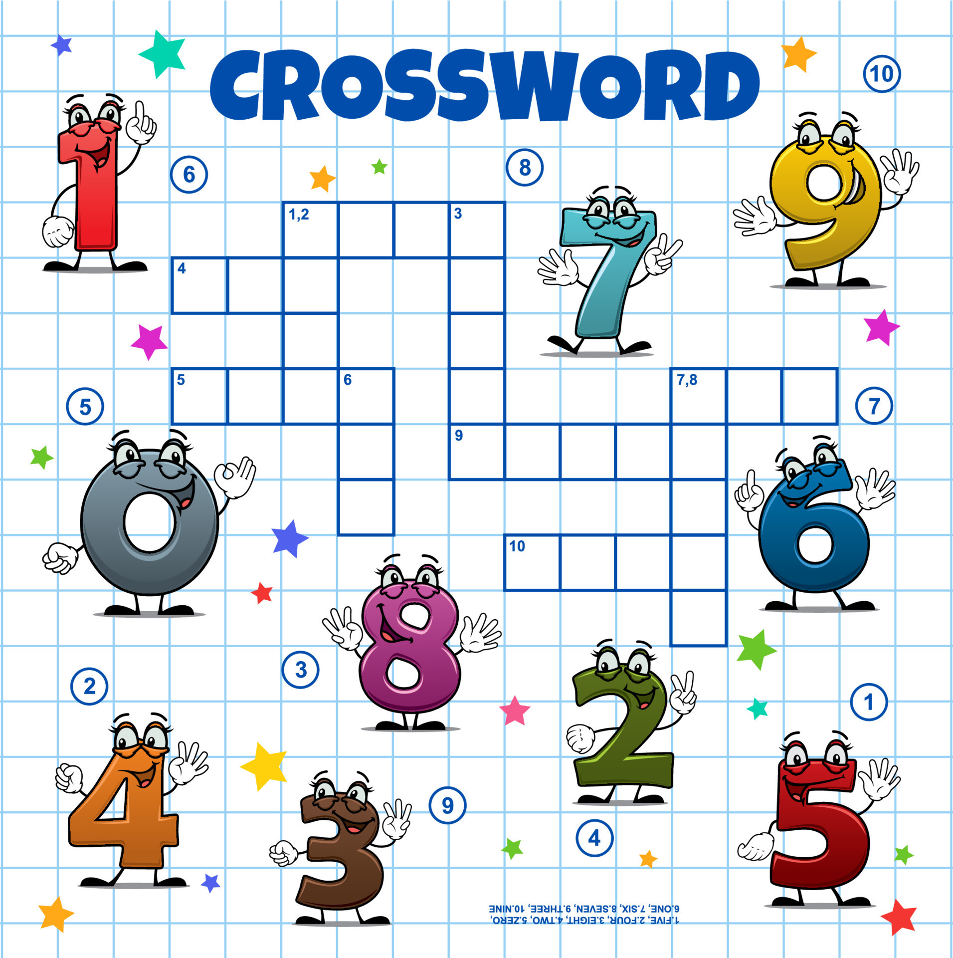 Cartoon school numbers and digits Crossword grid Find a word quiz