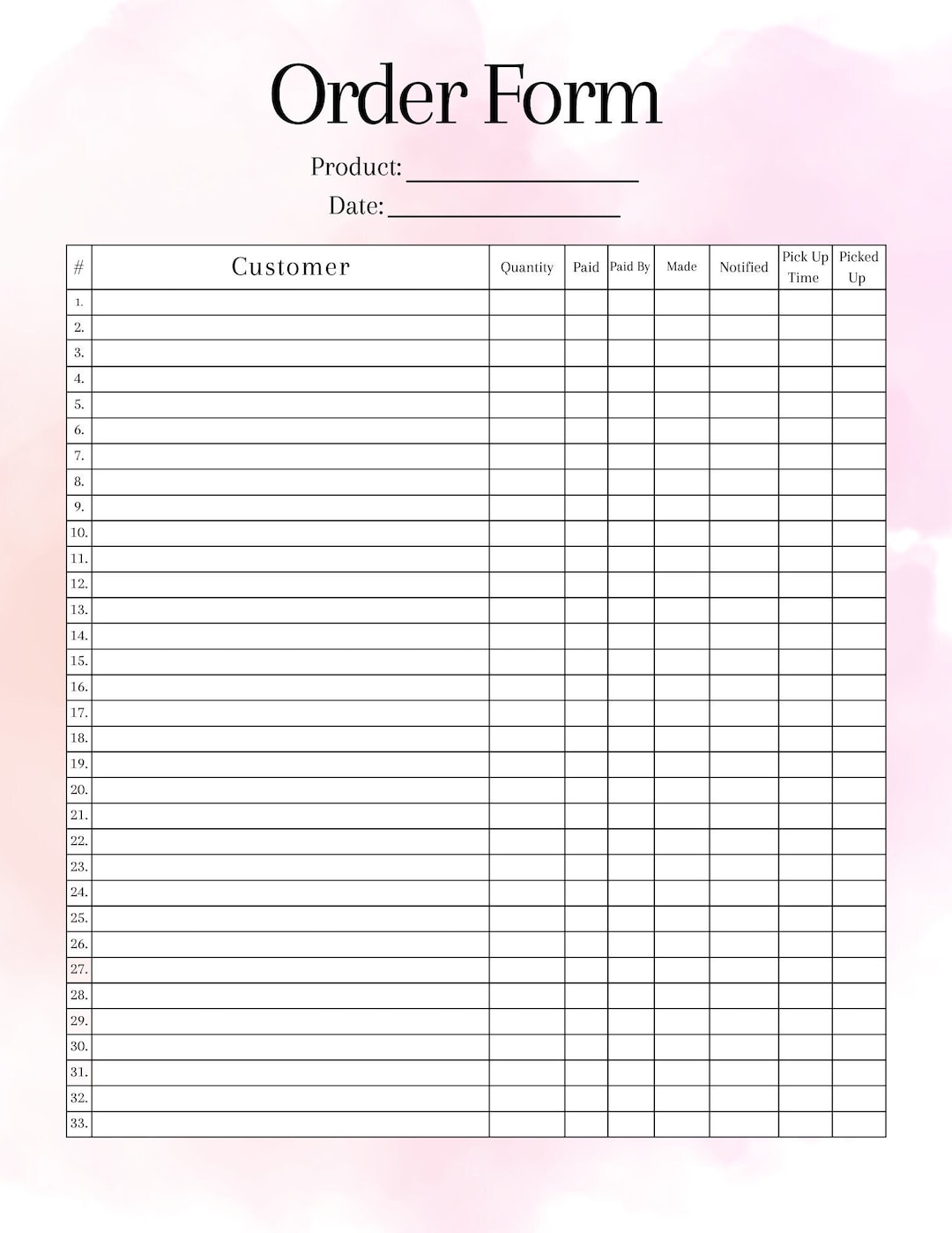 Editable custom order form template Artofit