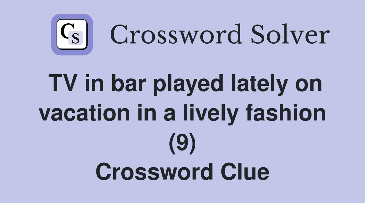 TV in bar played lately on vacation in a lively fashion (9) Crossword