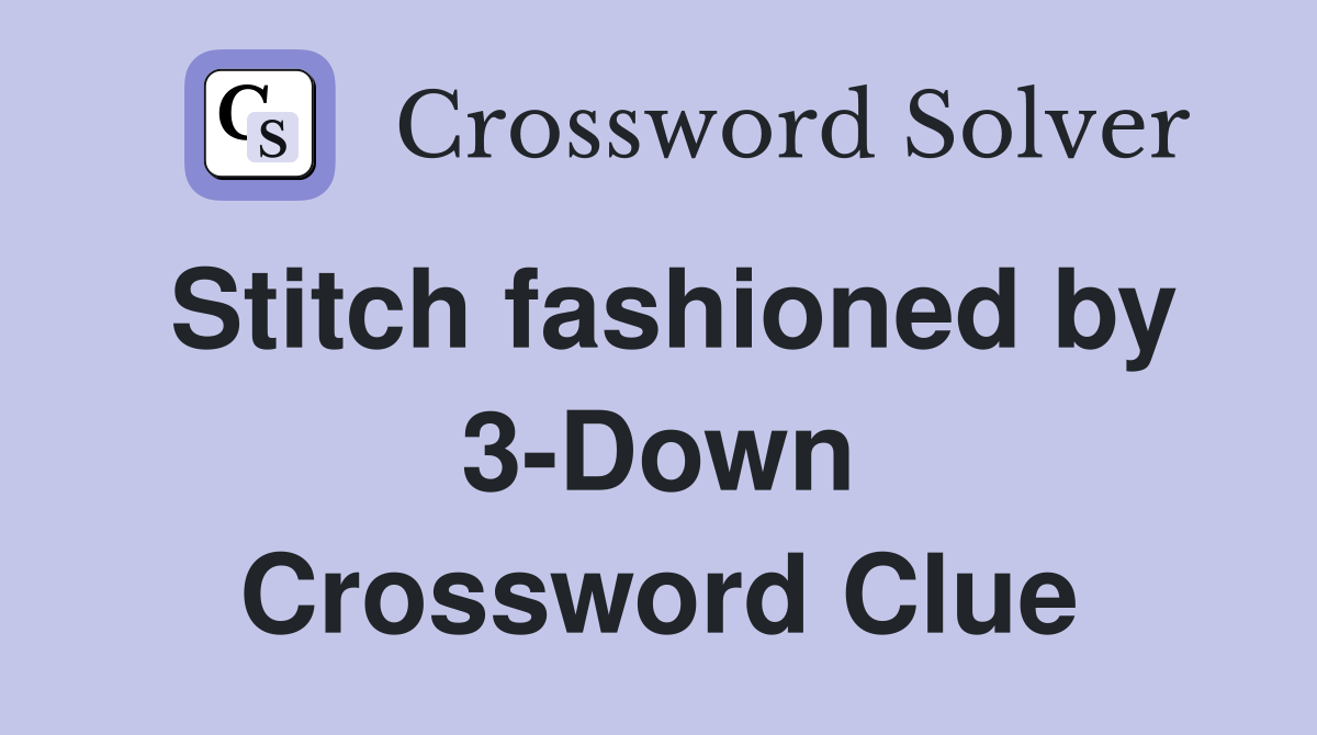 Stitch fashioned by 3 Down Crossword Clue Answers Crossword Solver