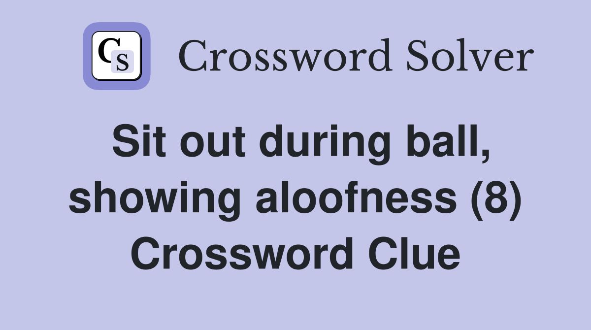 Sit out during ball showing aloofness (8) Crossword Clue Answers