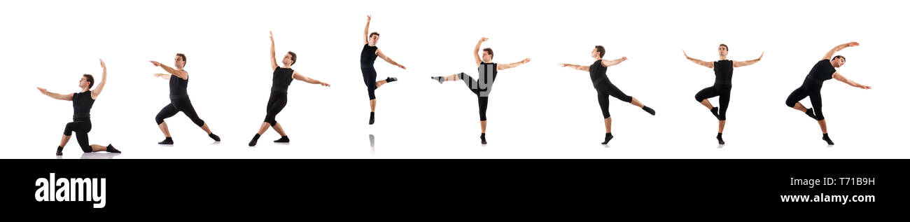 Collage Five Photos Of Ballerina In Black Leotard Posing Stock Photo