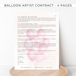 BALLOON Contract editable Balloon Artist Contract Template editable