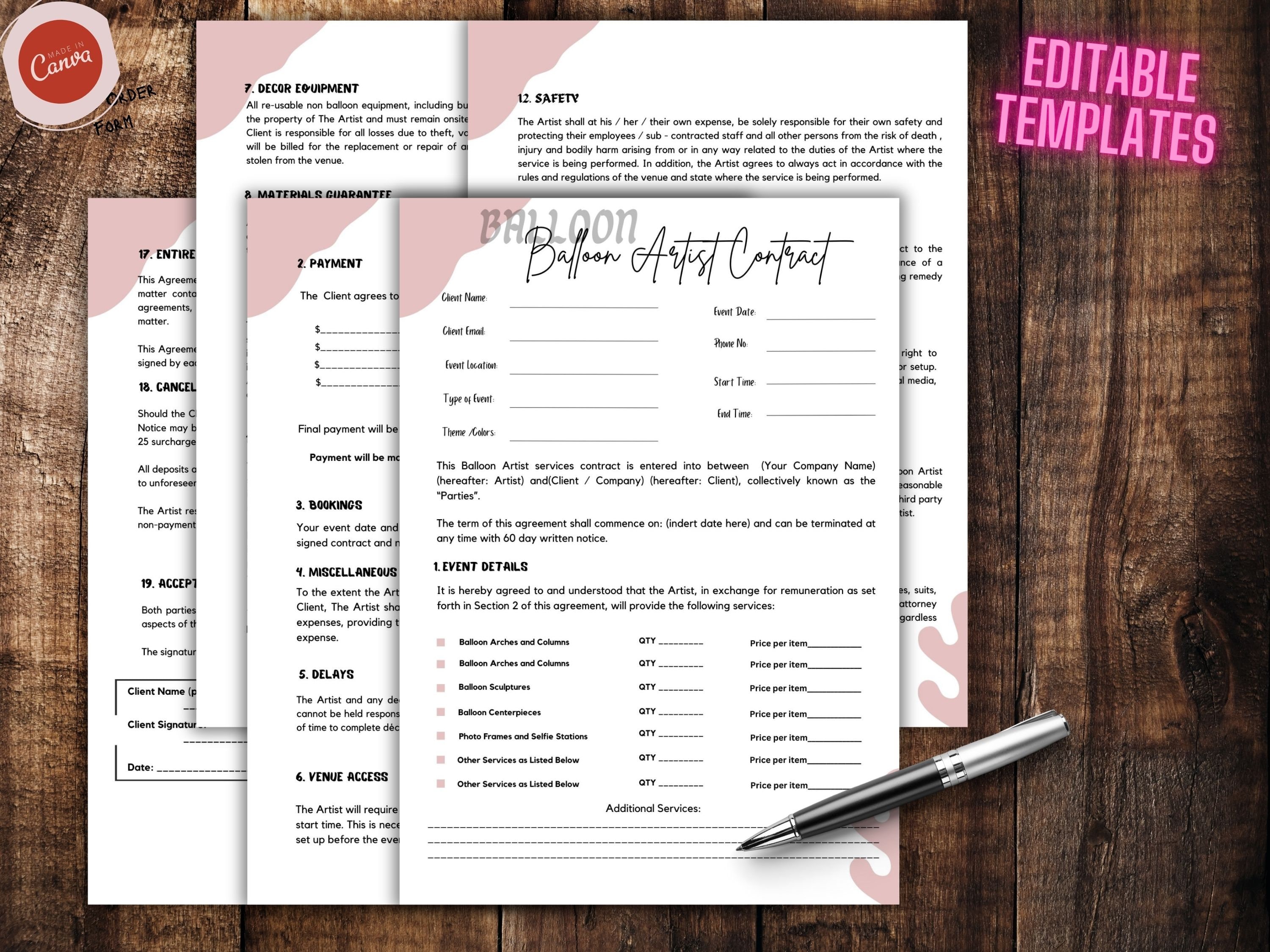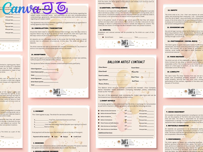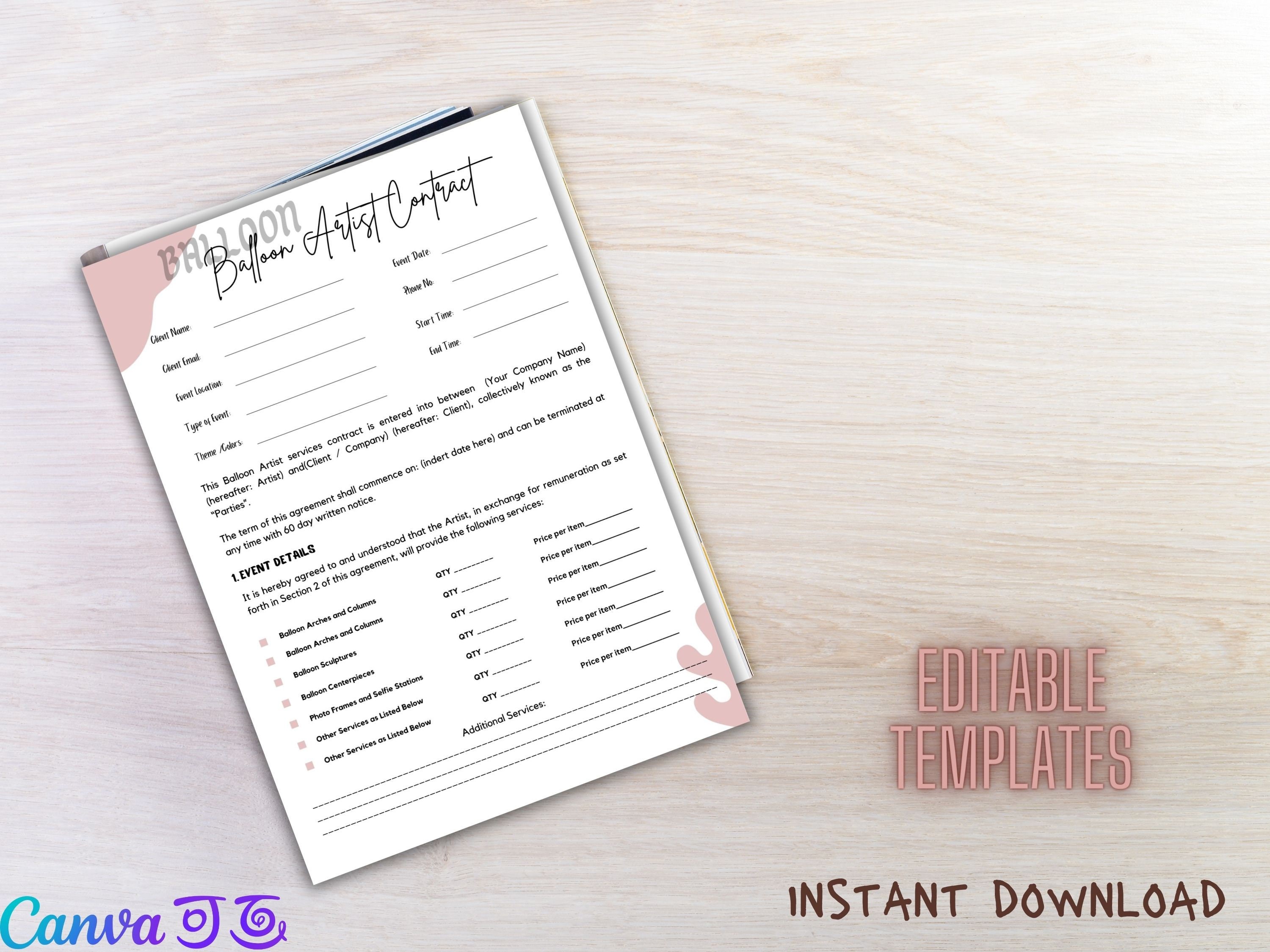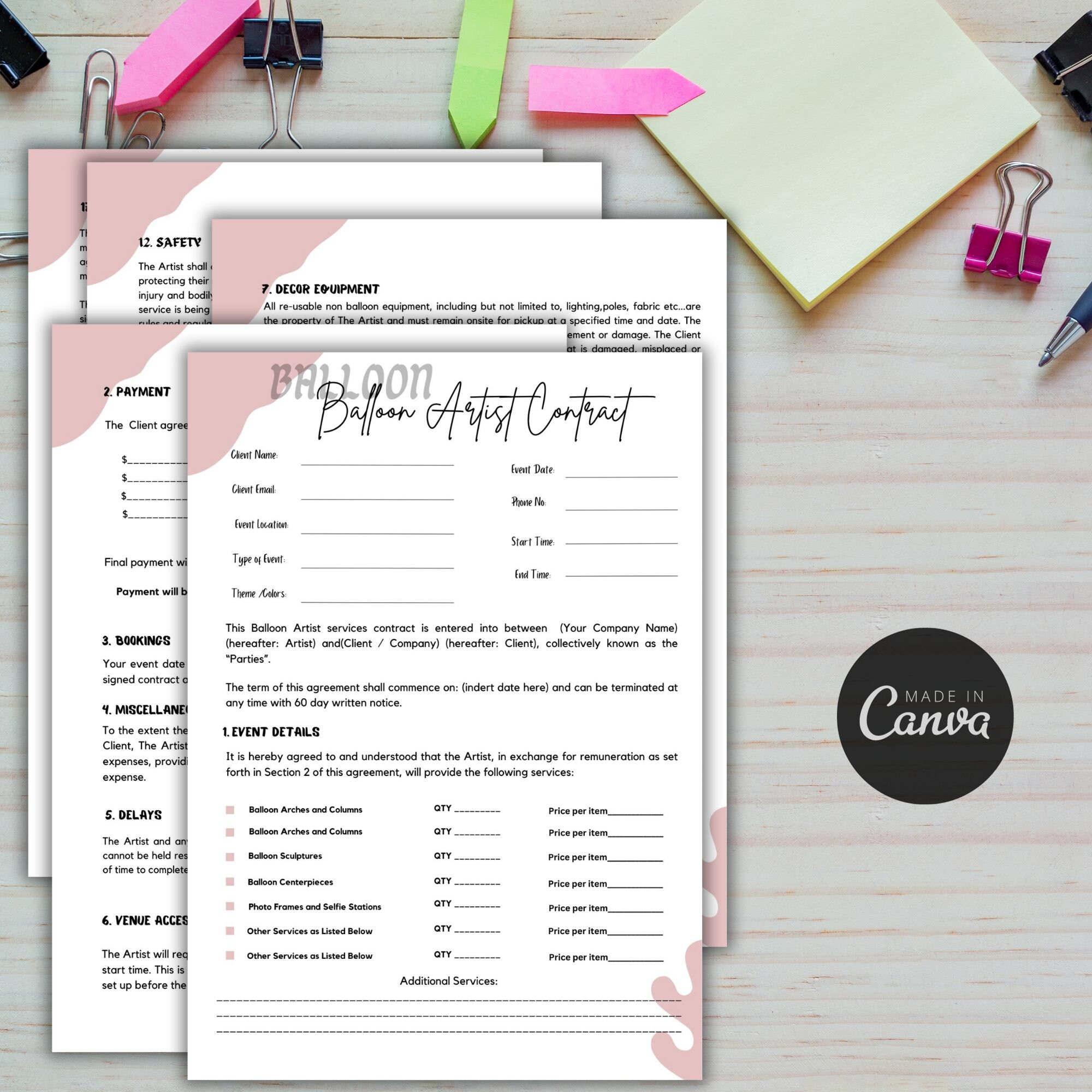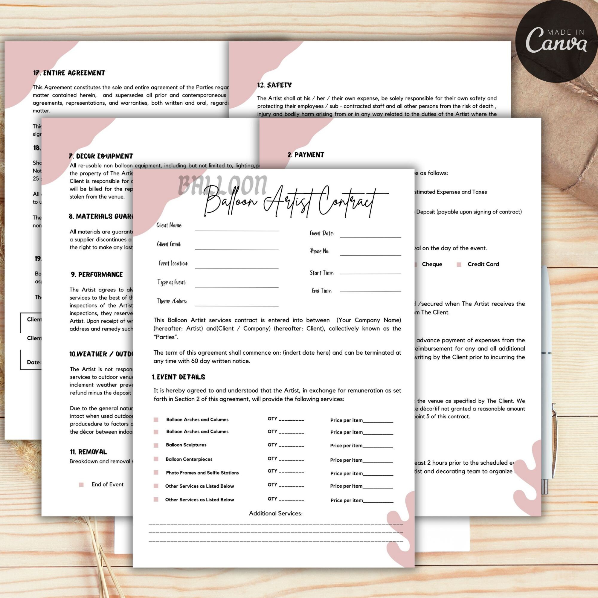 BALLOON CONTRACT Editable Balloon Artist Contract Template Etsy