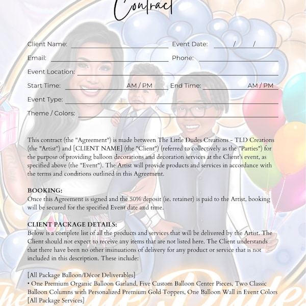 BALLOON ARTIST CONTRACT Template Editable Balloon Contract Balloon