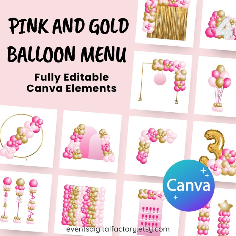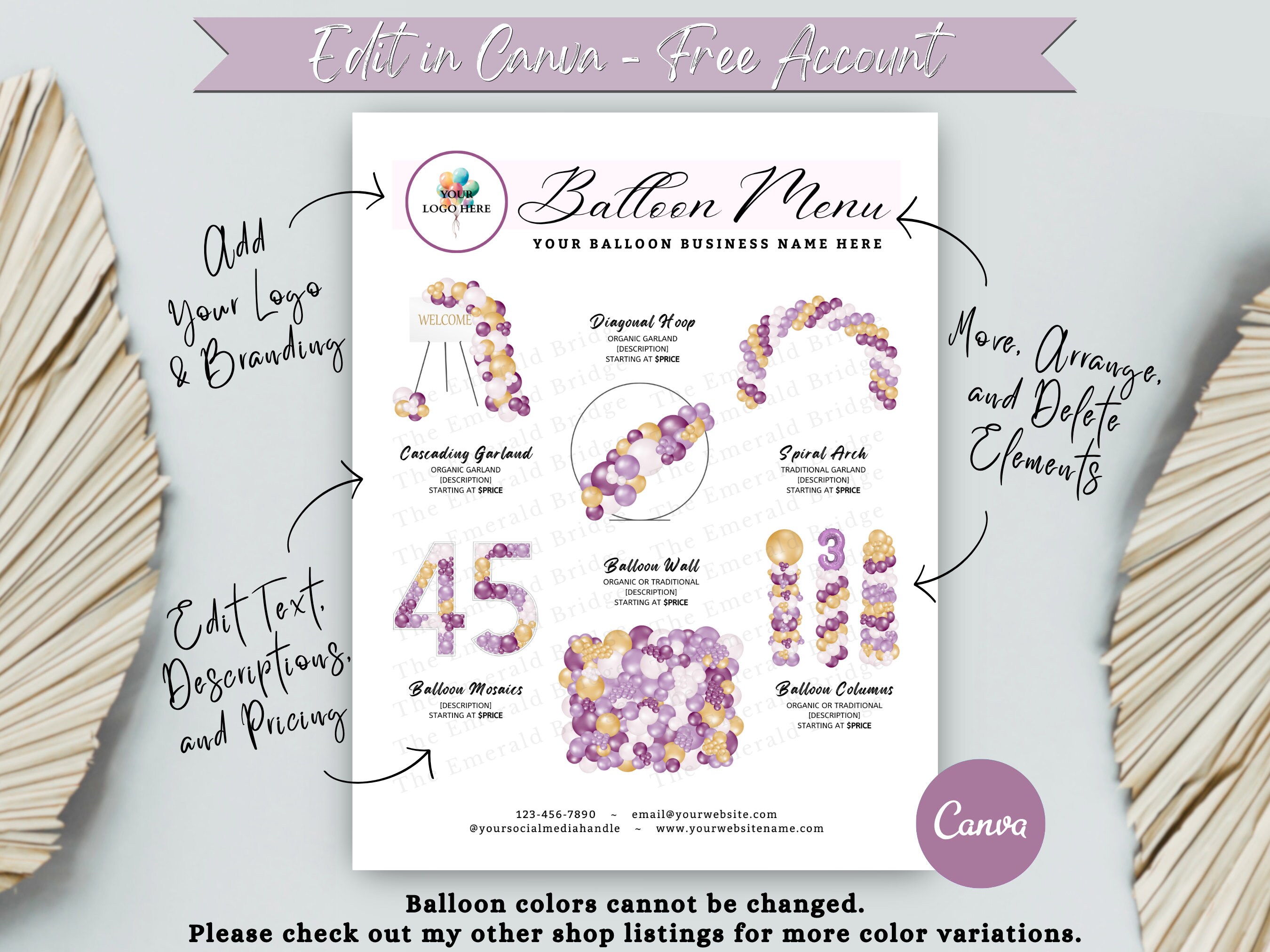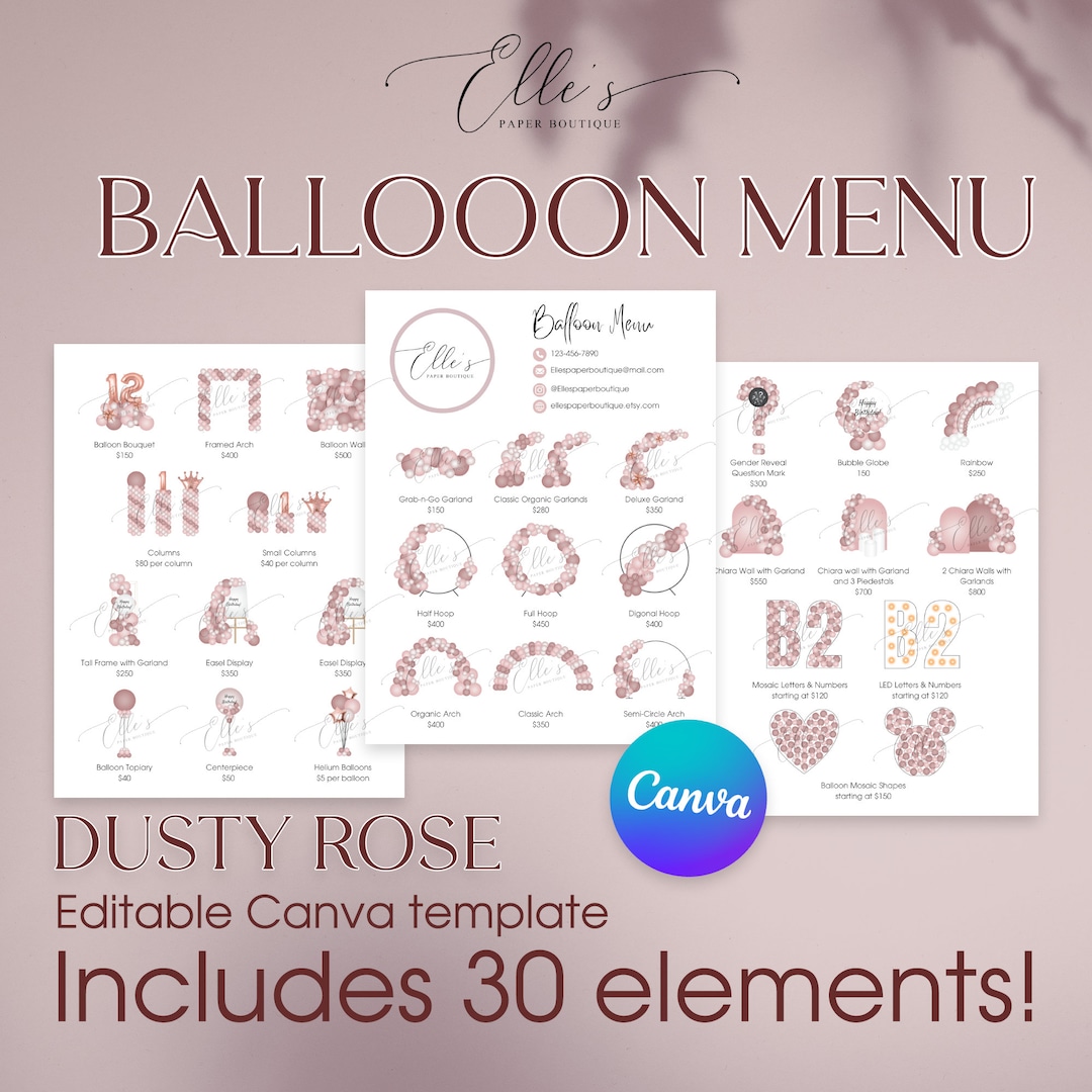 CANVA Balloon Menu Editable Balloon Menu Dusty Rose Balloon Pricing