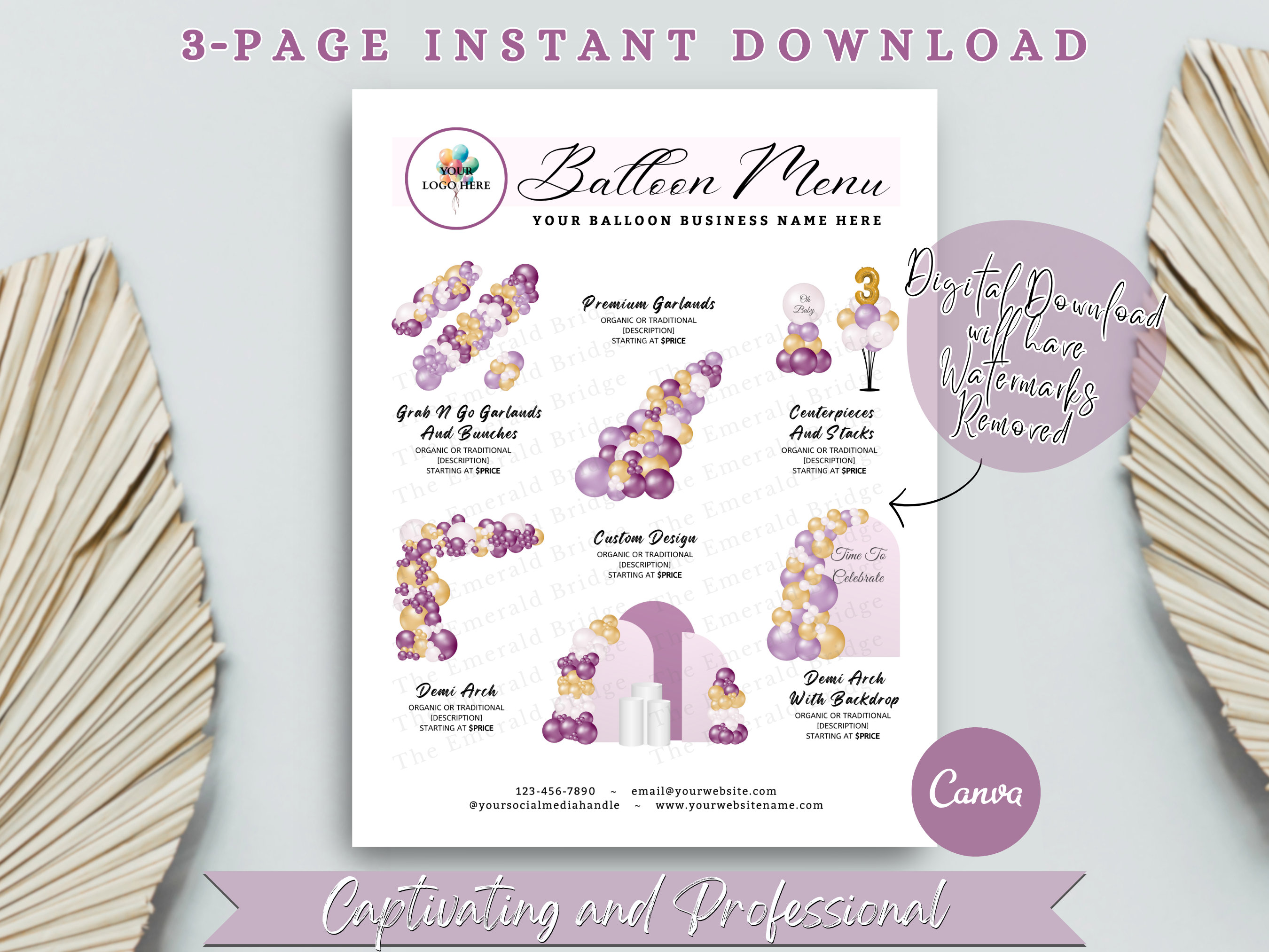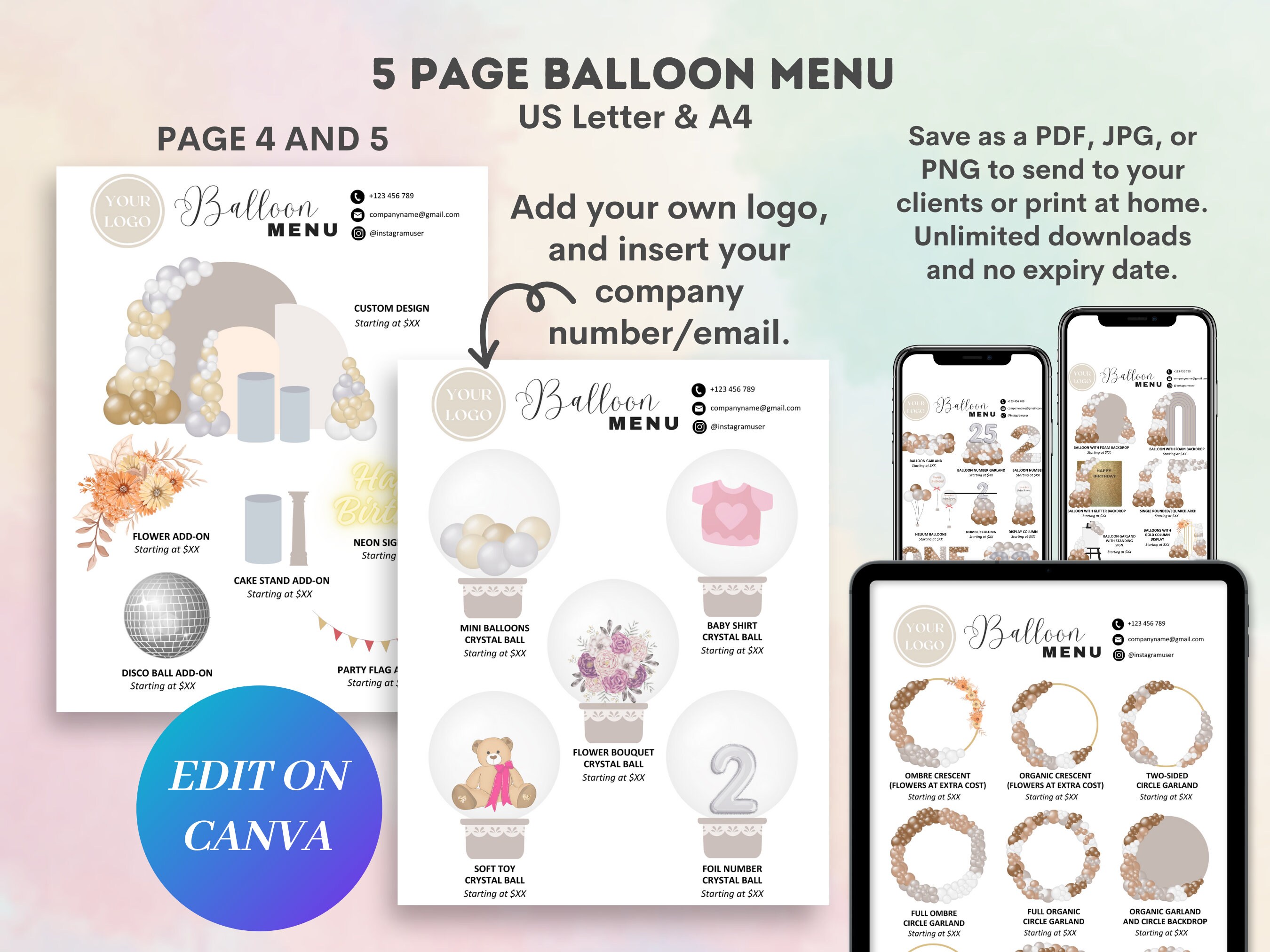 Transform Your Balloon Business with Our Editable Balloon Menu