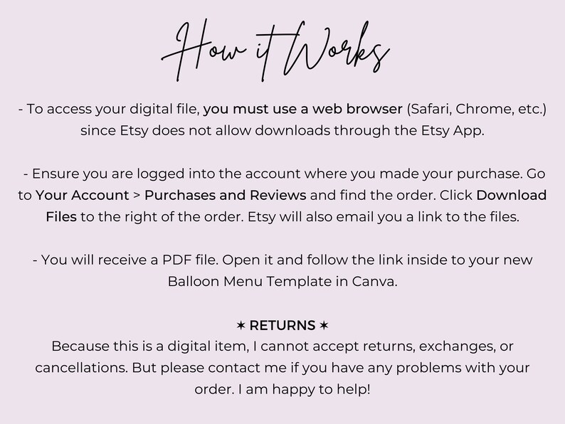 CANVA Balloon Menu Pink White Editable Balloon Menu Purple Balloon