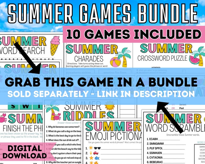 Summer Pictionary Game / Summer Party Game / Printable Summertime Game