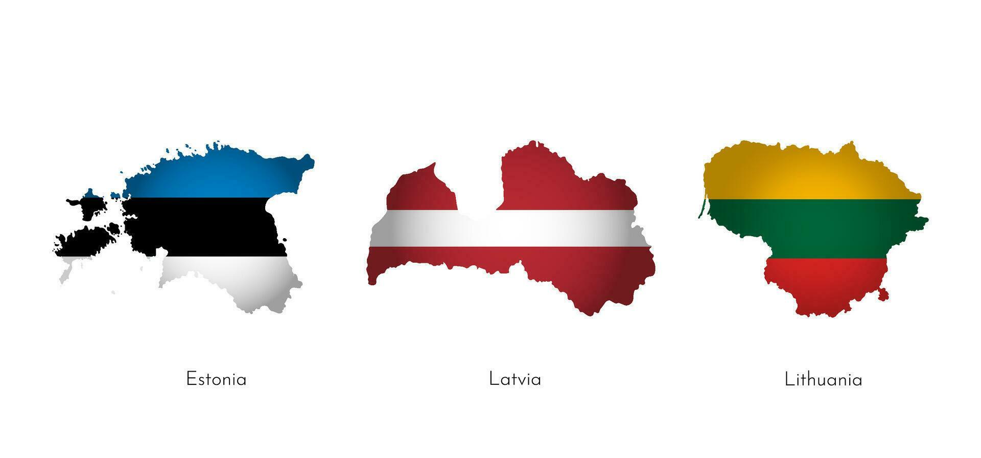 Vector illustration set with isolated silhouettes of Baltic States maps