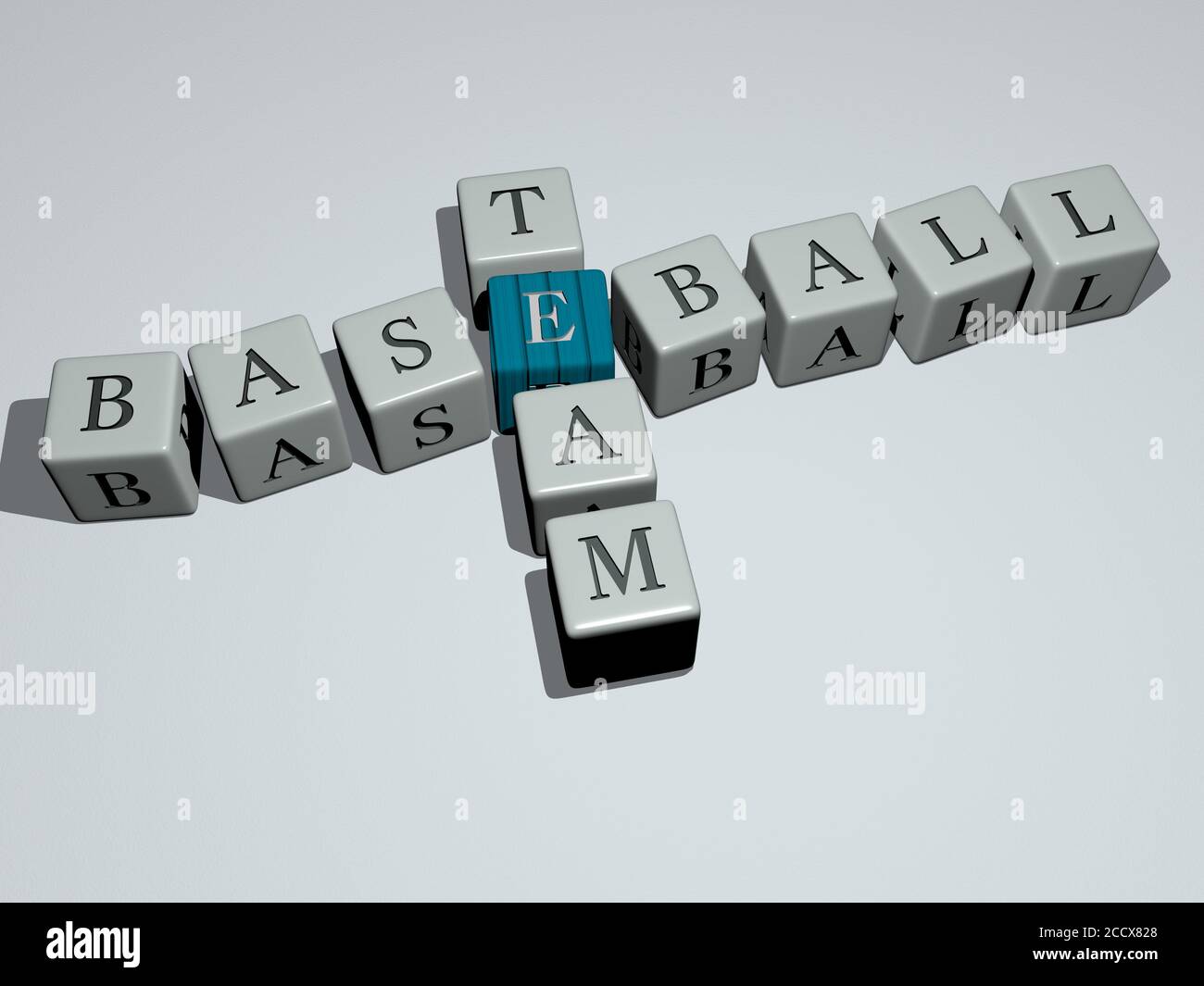 baseball team crossword by cubic dice letters 3D illustration Stock