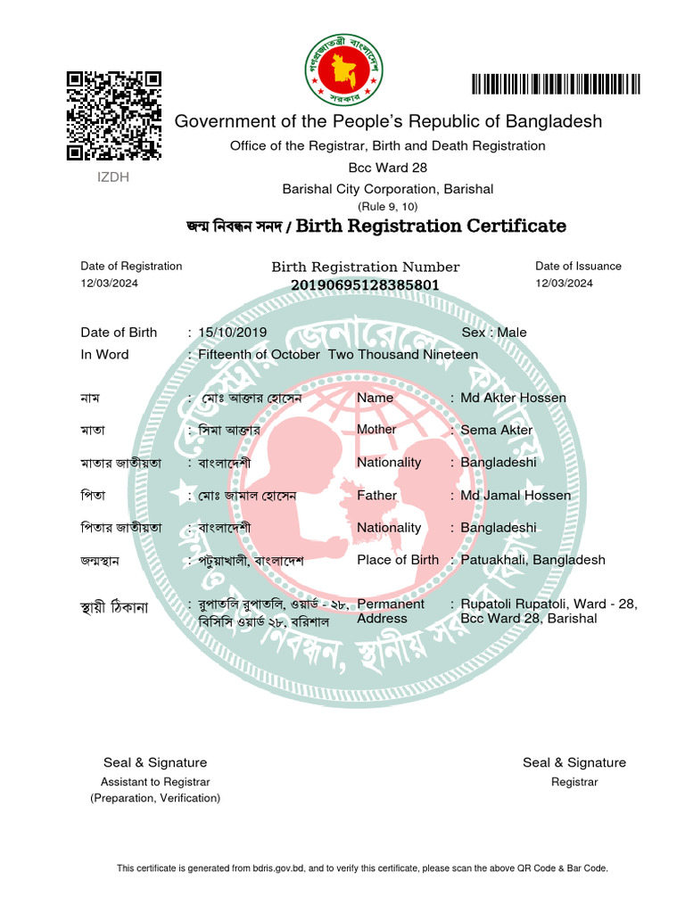 Bangladesh Birth Certificate
