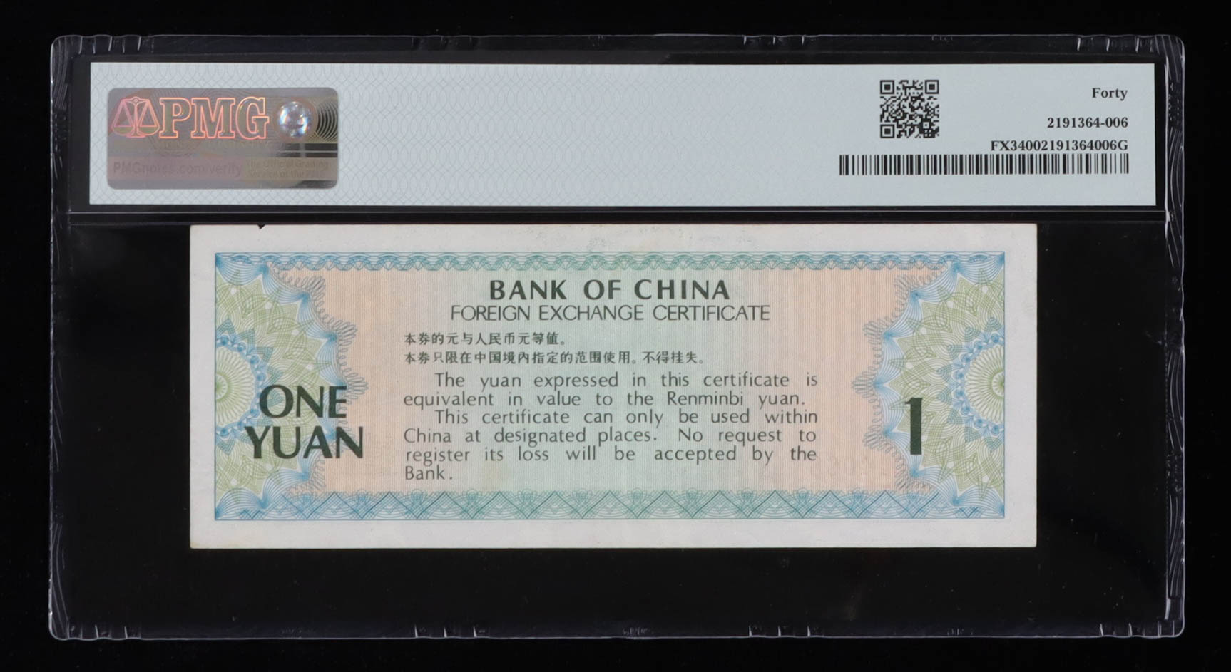 1979 Bank of China / Foreign Exchange Certificate 1 Yuan (PMG