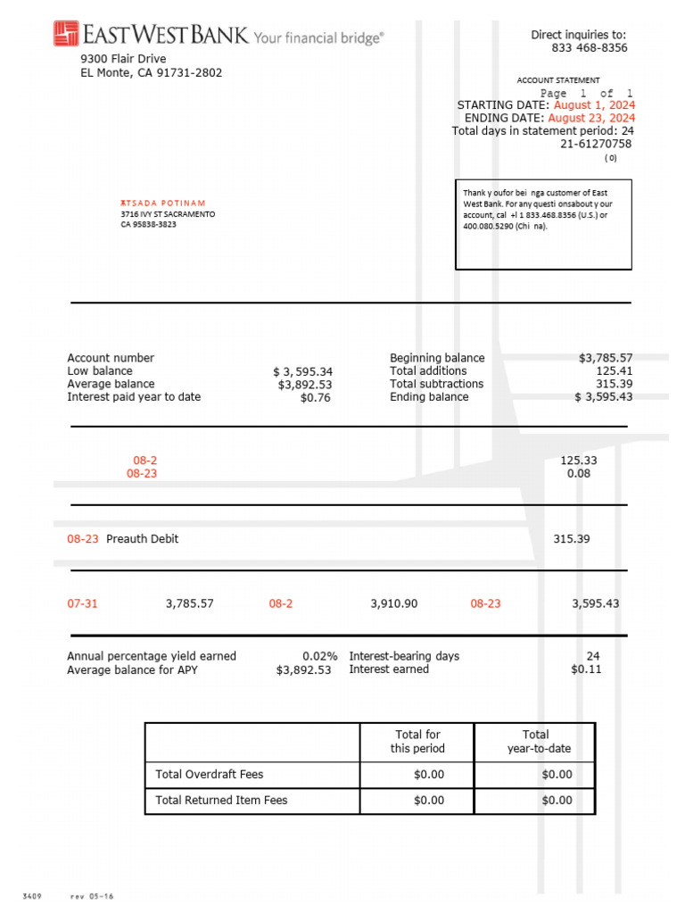 Philippines Eastwest Bank Statement In Excel And Pdf Template (100%