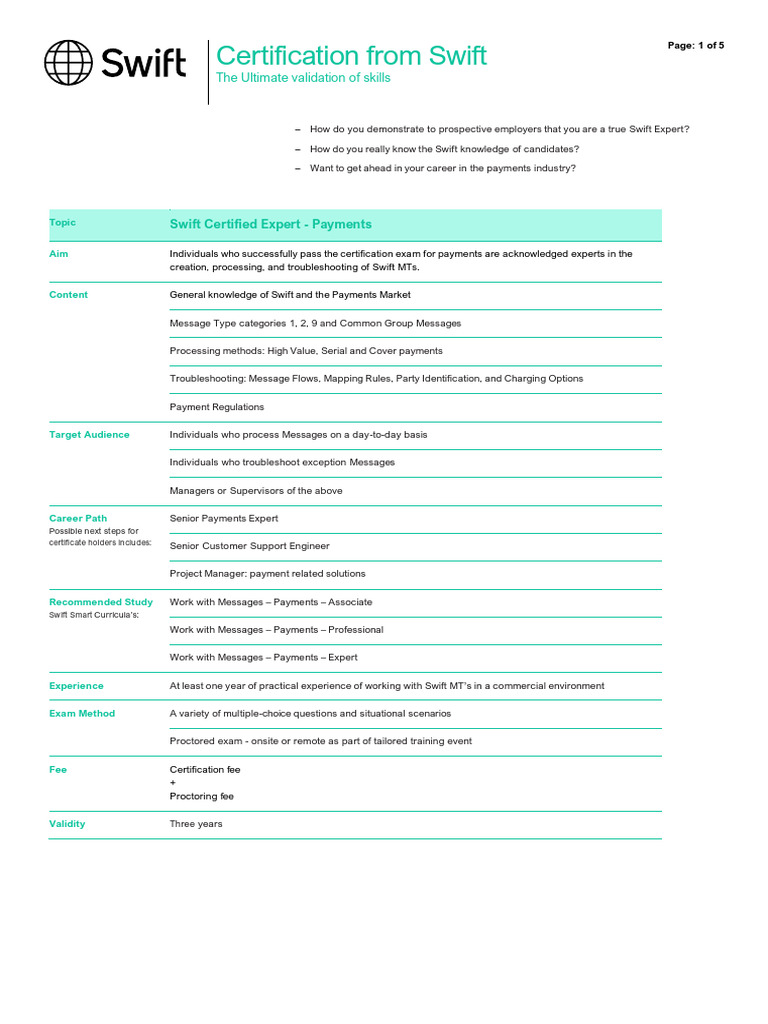 Certification Summary Swift Payments PDF Banks Knowledge
