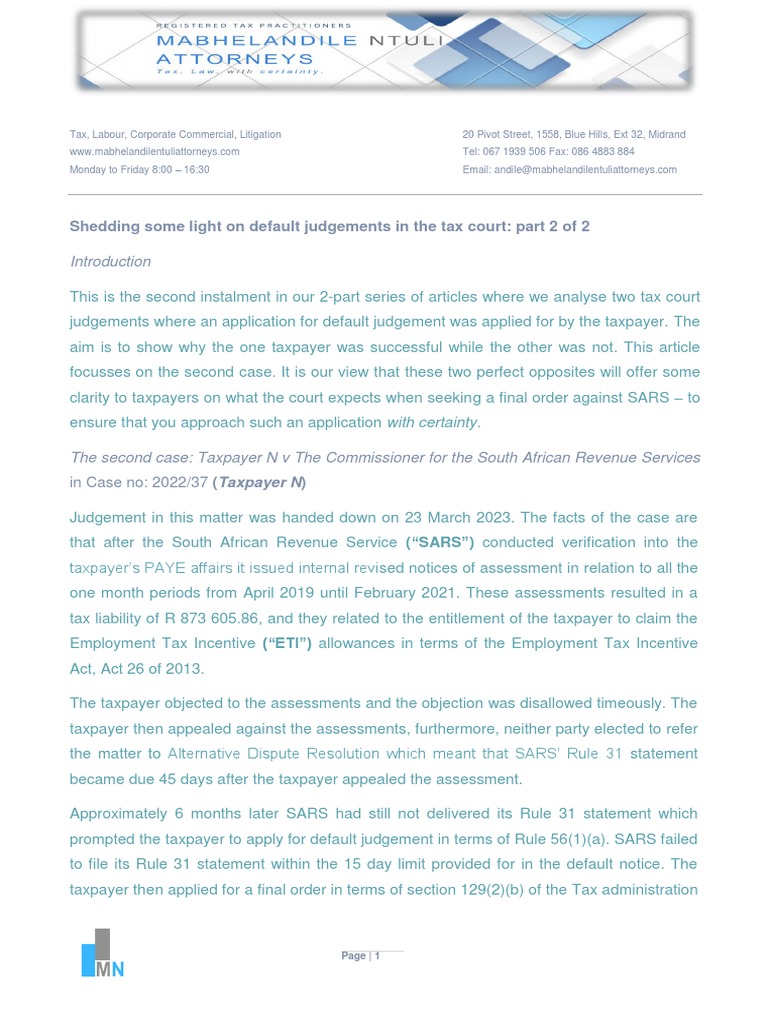 Shedding Some Light On Default Judgements in The Tax Court Part 2 of 2