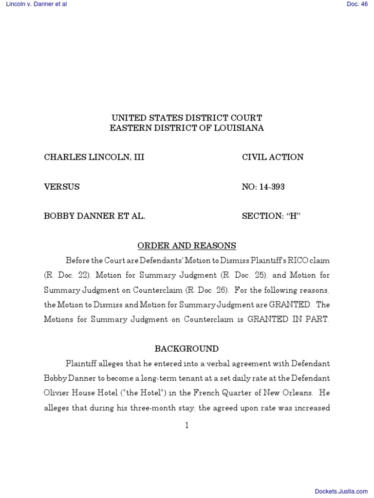 Exhibit A US District Court Eastern District of Louisiana