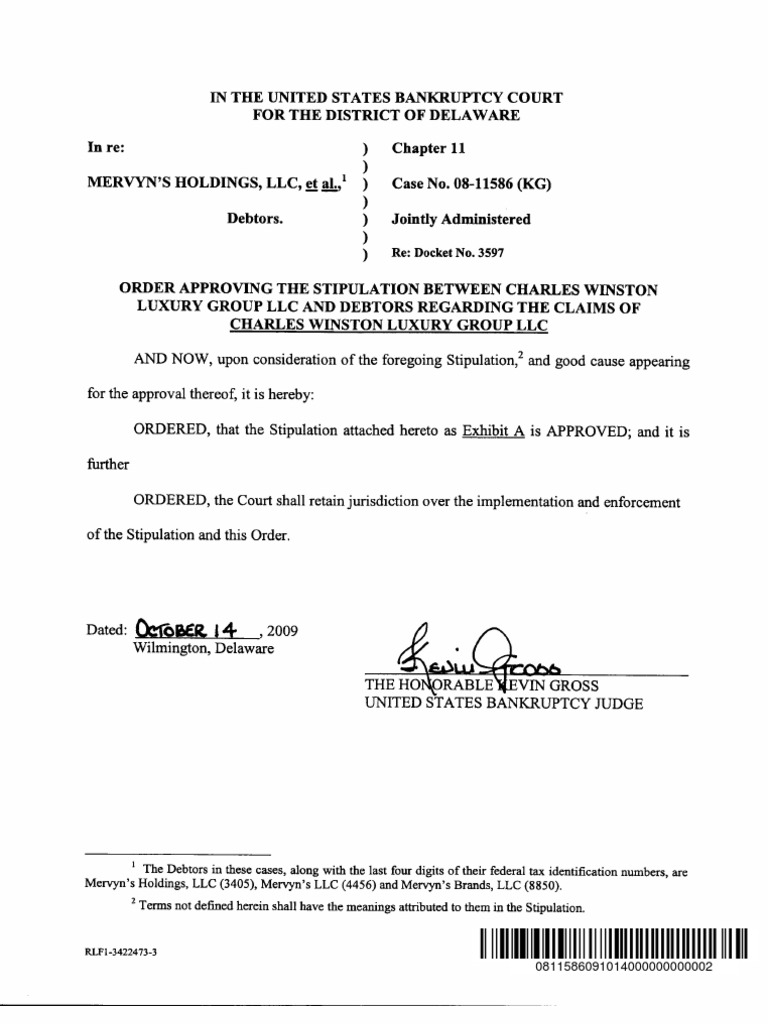 LLC LLC: IN T) Nited Bankruptcy Court The District Delaware in Mervyn #39 S