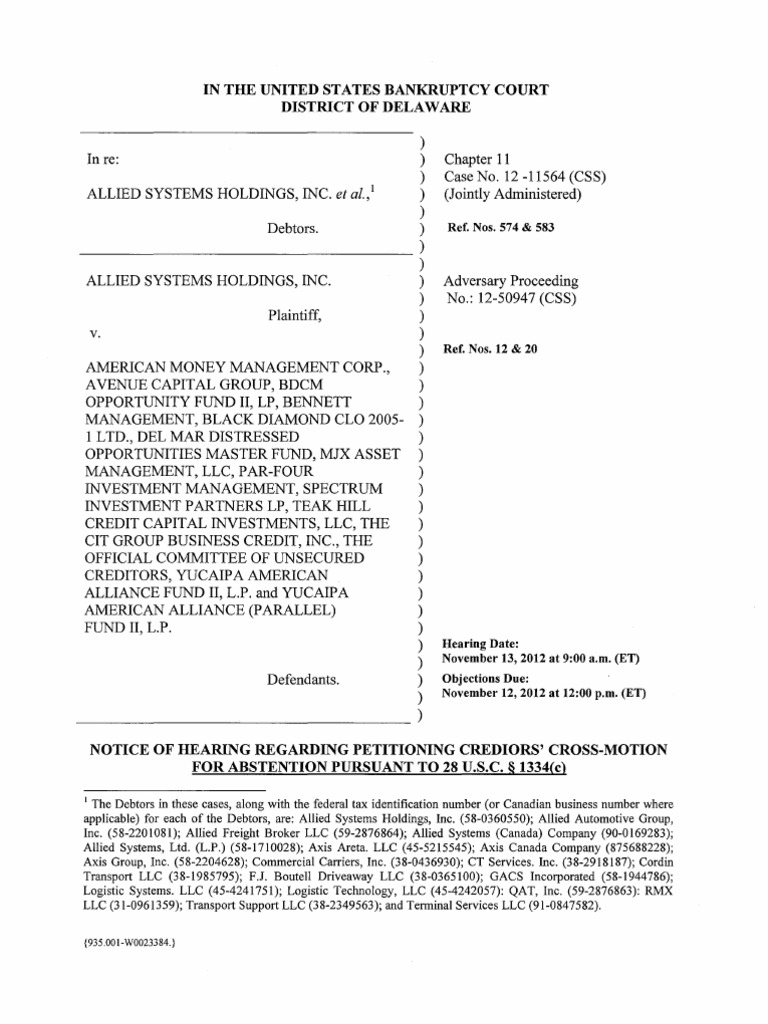 USF Holland LLC Files for Bankruptcy in Delaware BKData