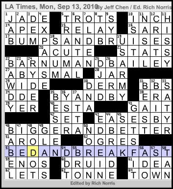 L A Times Crossword Corner: Monday September 13 2010 Jeff Chen
