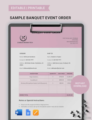 Banquet Event Order Template in Word Google Docs Pages Download